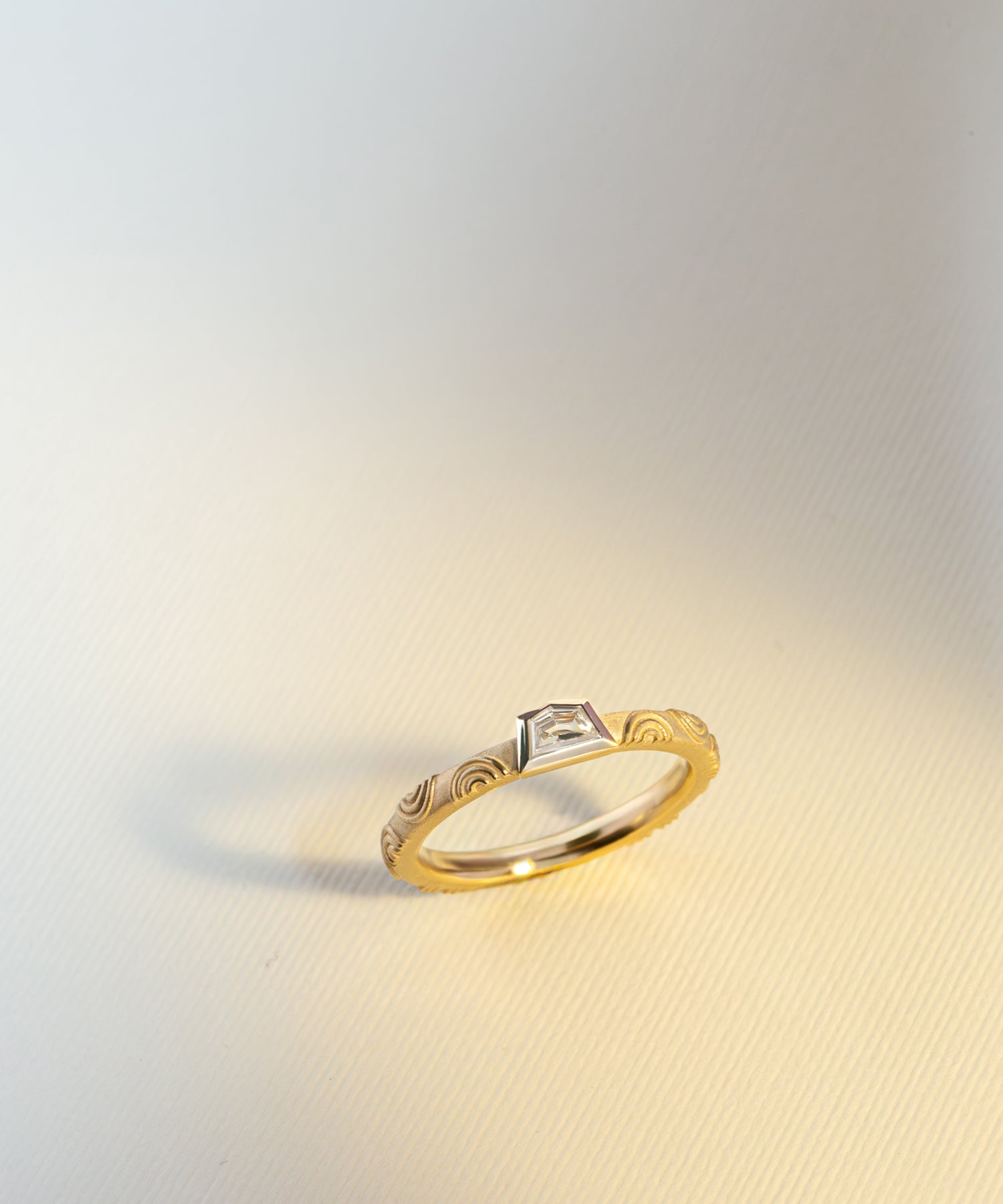 Rainbow Detail Band with Cadillac Cut Natural Diamond in 9ct Yellow Gold