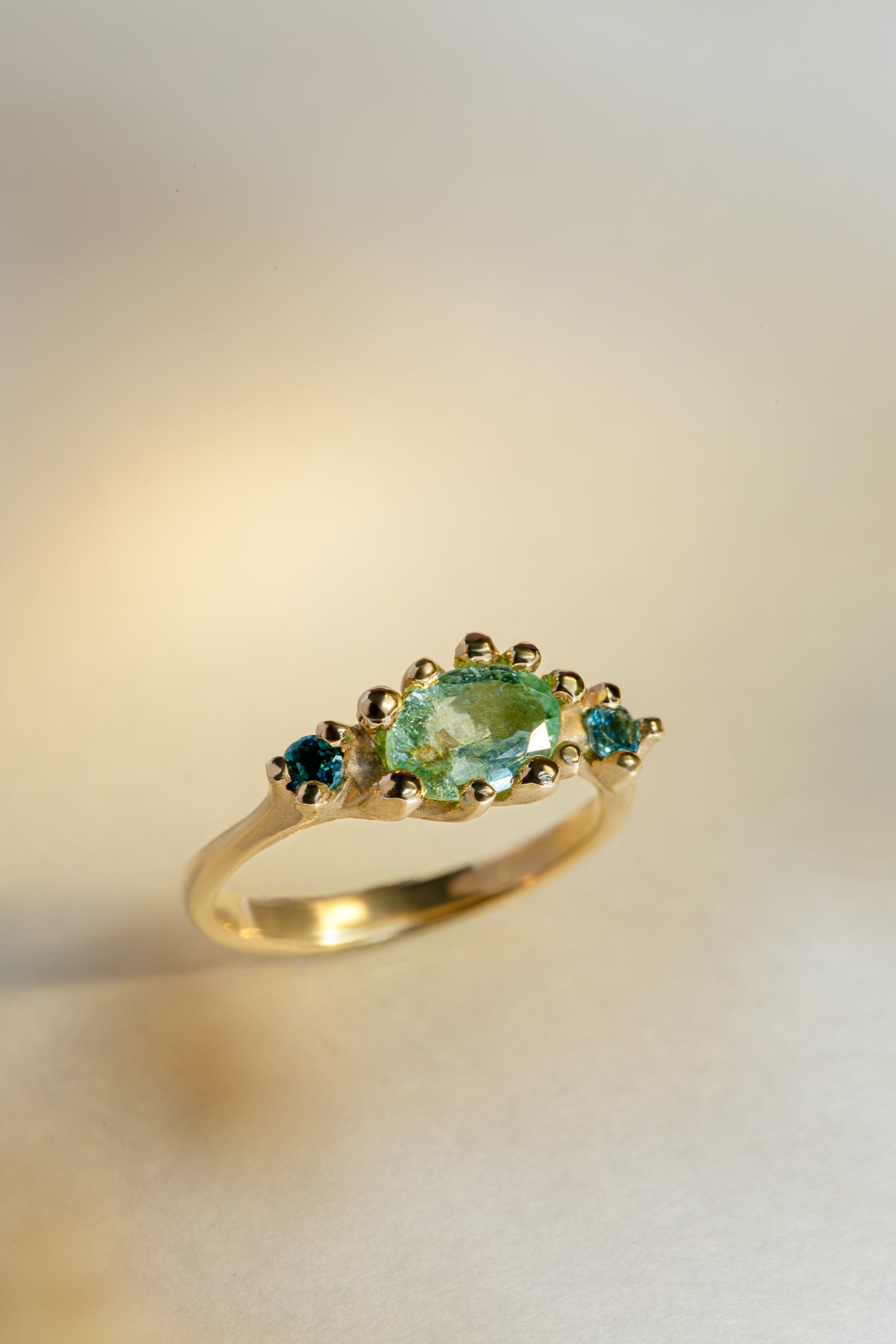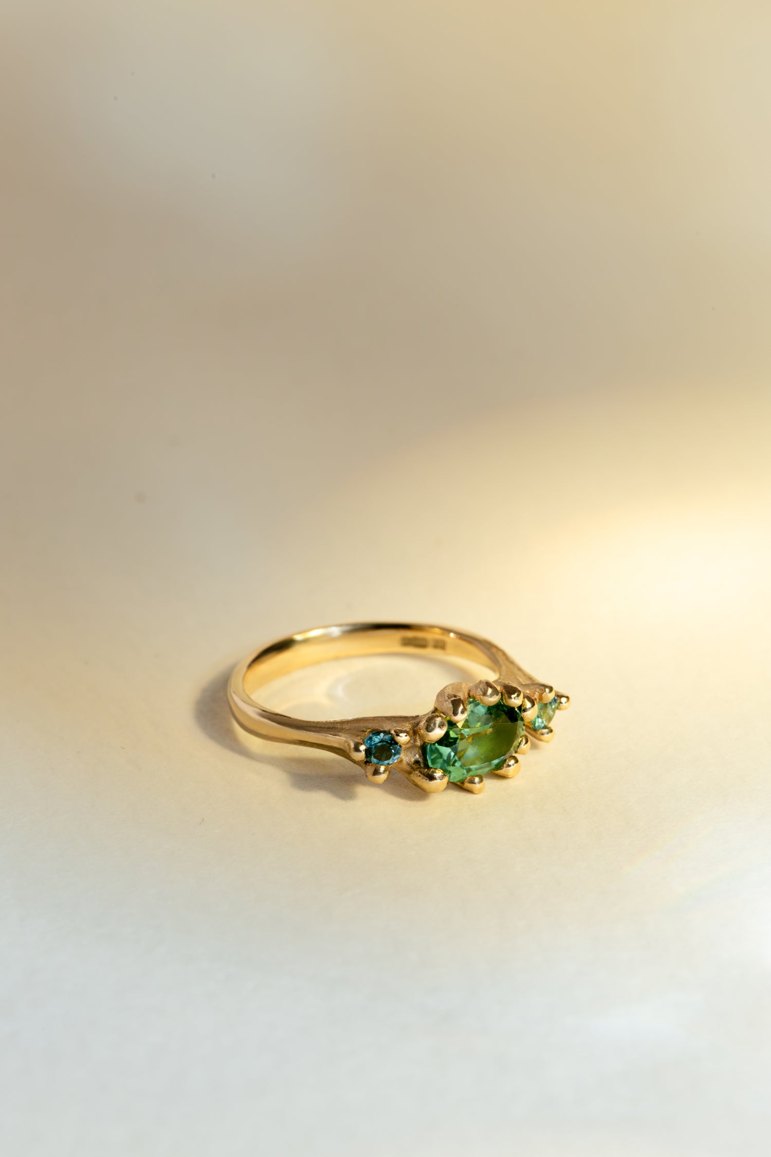The Entwine Trilogy Ring brings together three tourmalines in a flowing 9ct yellow gold setting.