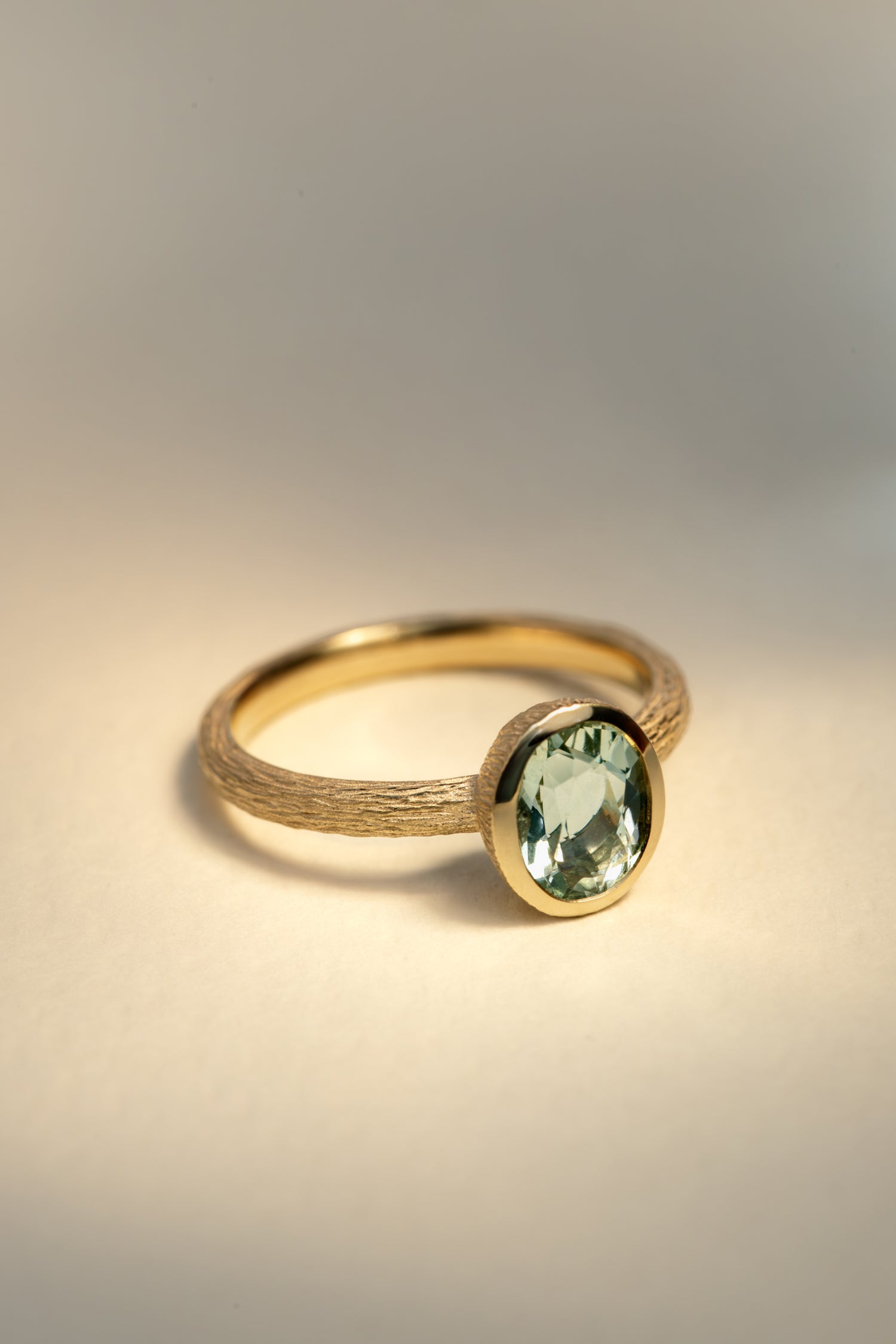 Entwine Still – Textured Oval Mint Green Tourmaline Ring in 9ct Yellow Gold